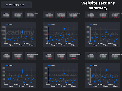 Отчет по динамике посещений разделов сайта показал, что больше всего посещался раздел с играми, но это очевидно — он на самой первой странице.