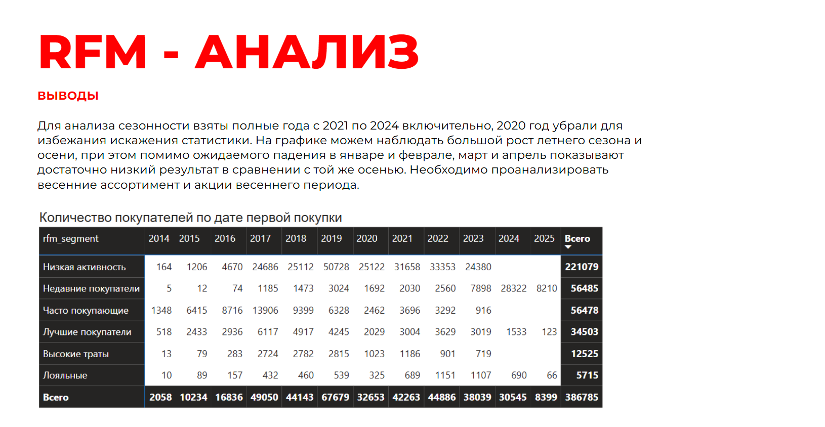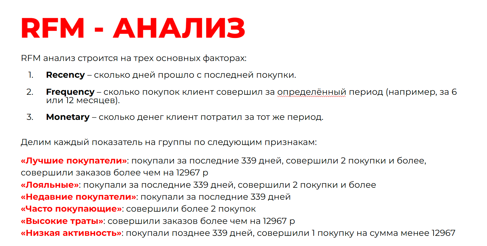 рассчитали сегменты аудиторий по RFM и ABC анализу